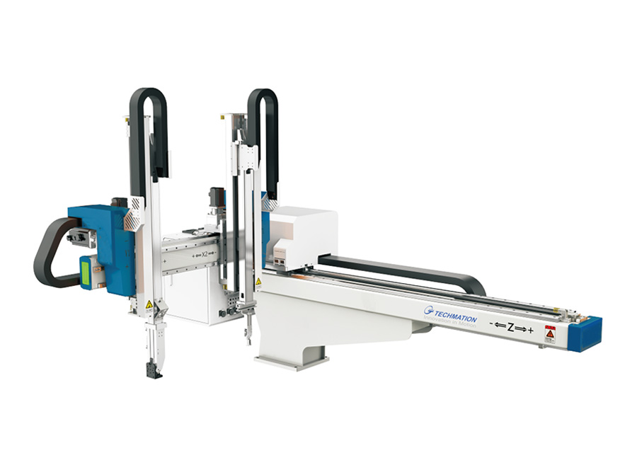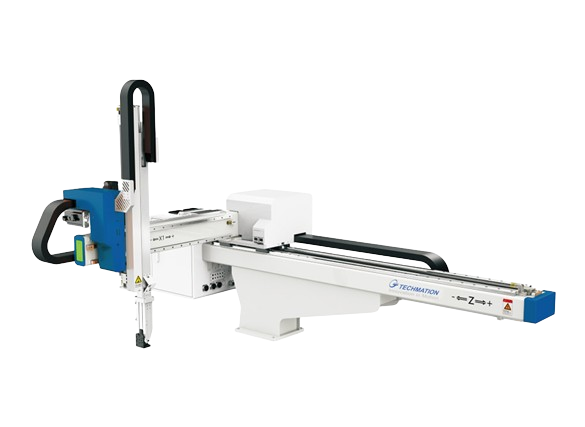 机械手用于注射成型机的成品以及水口的取出以及自动剪胶口、喷托模剂、模内放嵌件、模内贴标、模外整型、装配、堆叠、产品包装等等;广泛应用于汽车零部件,家电设备,食品包装、光学制造等行业中;为客户实现减员、增效、提质、保安全。