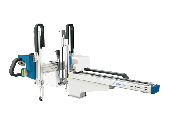 机械手用于注射成型机的成品以及水口的取出以及自动剪胶口、喷托模剂、模内放嵌件、模内贴标、模外整型、装配、堆叠、产品包装等等;广泛应用于汽车零部件,家电设备,食品包装、光学制造等行业中;为客户实现减员、增效、提质、保安全。
