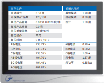 可支持3个电力计连接,根据监测对象分类显示,比如电热、伺服、辅机等