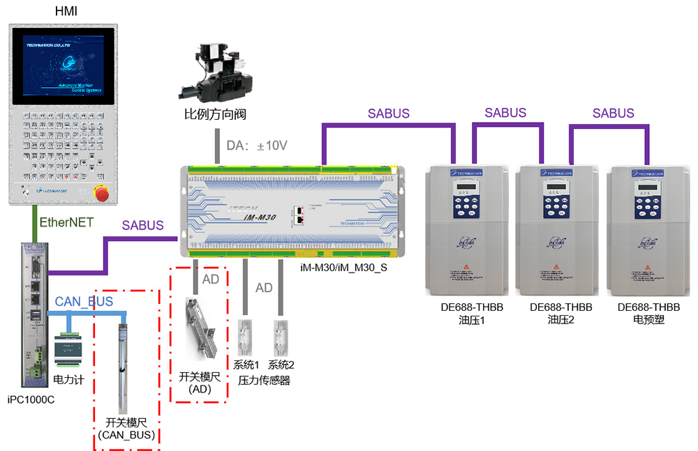 • 采用自主研发的SABUS总线架构,通讯实时性更高,更稳定,扩展便利,接线简化